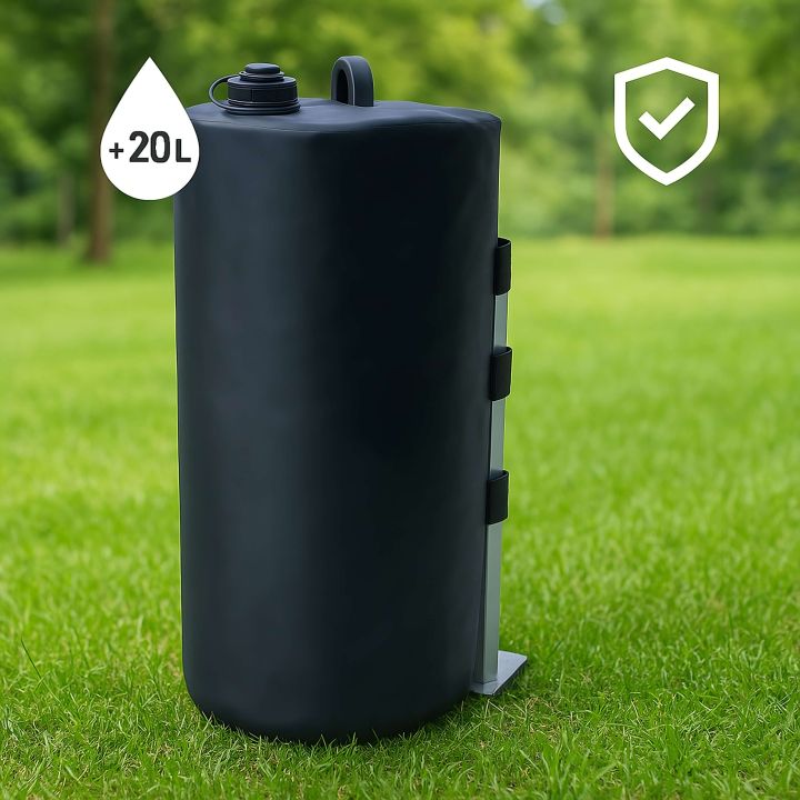 • Capacité de 20 litres – Après remplissage d'eau, le poids atteint 20 kg, ce qui assure une stabilité suffisante même en cas de vent fort.
