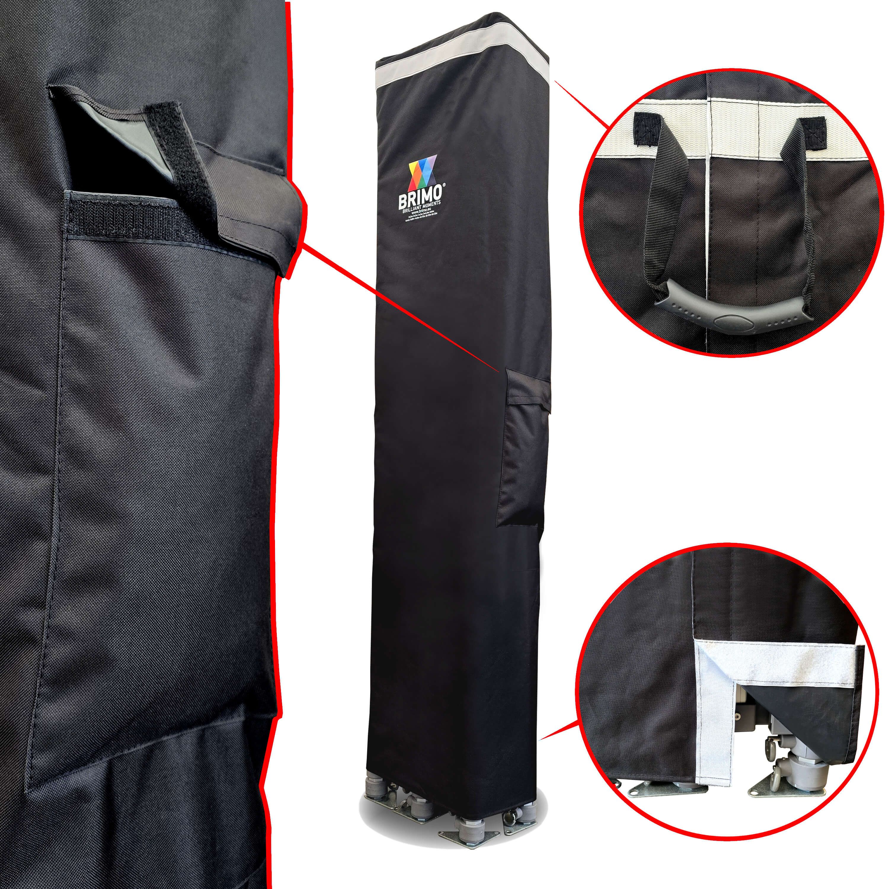 - Hauteur totale : Grâce à sa hauteur impressionnante de 355 à 395 cm, votre tente sera immanquable même de très loin. Cela garantit une excellente visibilité de votre présentation et de votre logo lors de chaque événement.